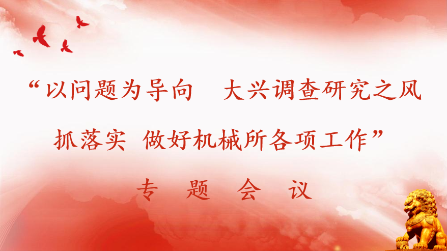 通過(guò)本次專題會(huì)議,全所人員一致表示要以習(xí)近平新時(shí)代中國(guó)特色社會(huì)主義思想為指導(dǎo),加強(qiáng)調(diào)研,以問(wèn)題為導(dǎo)向,大興調(diào)查研究之風(fēng),抓落實(shí),做好機(jī)械所各項(xiàng)工作。
