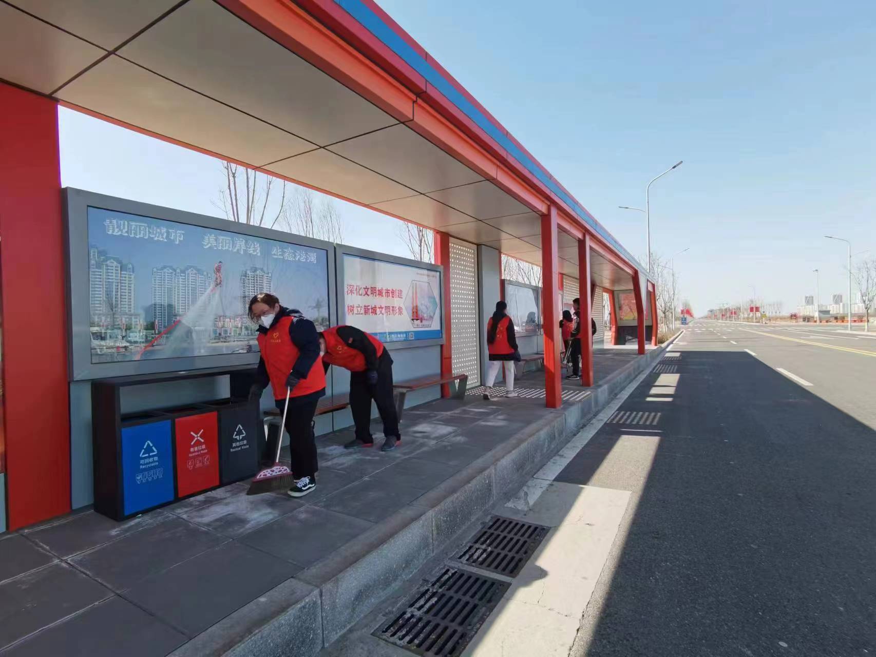 筑誠公司黨員和干部職工20余人熱情飽滿地走上新城大街,大家帶著抹布、簸箕、笤帚等,沿著主干道,撿拾人行道、綠化帶、角落里的煙頭、塑料袋等垃圾,并對沿線公交站點、精神堡壘、張貼欄等進行擦拭,隨后為我們的環衛工人送上慰問禮包。